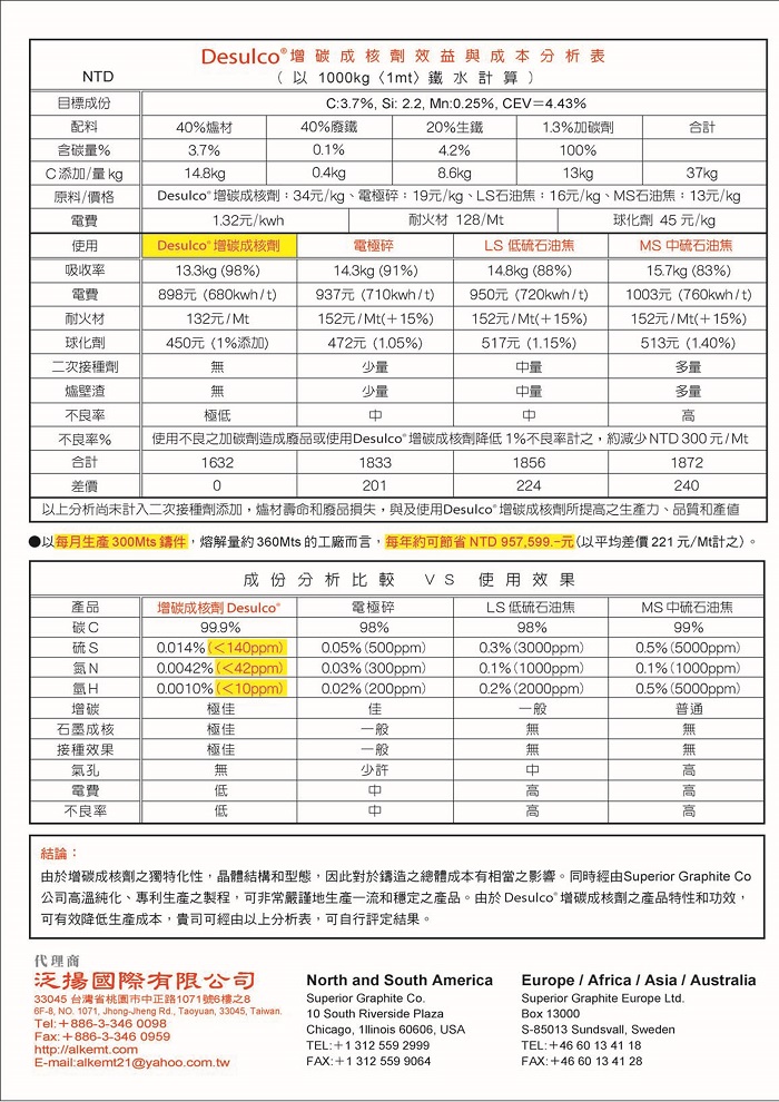 瑞典Desulco增碳成核劑